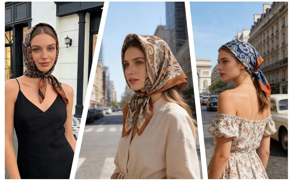 【منديل شعر عصري】 يمكن أن تضيف أنماط الموضة على وشاح الرأس المزيد من الأناقة والجمال لك مع الملابس اليومية المختلفة. الوشاح النسائي مناسب جدًا للارتداء طوال العام: العمل، والحفلات، والمواعيد، والسفر وما إلى ذلك.