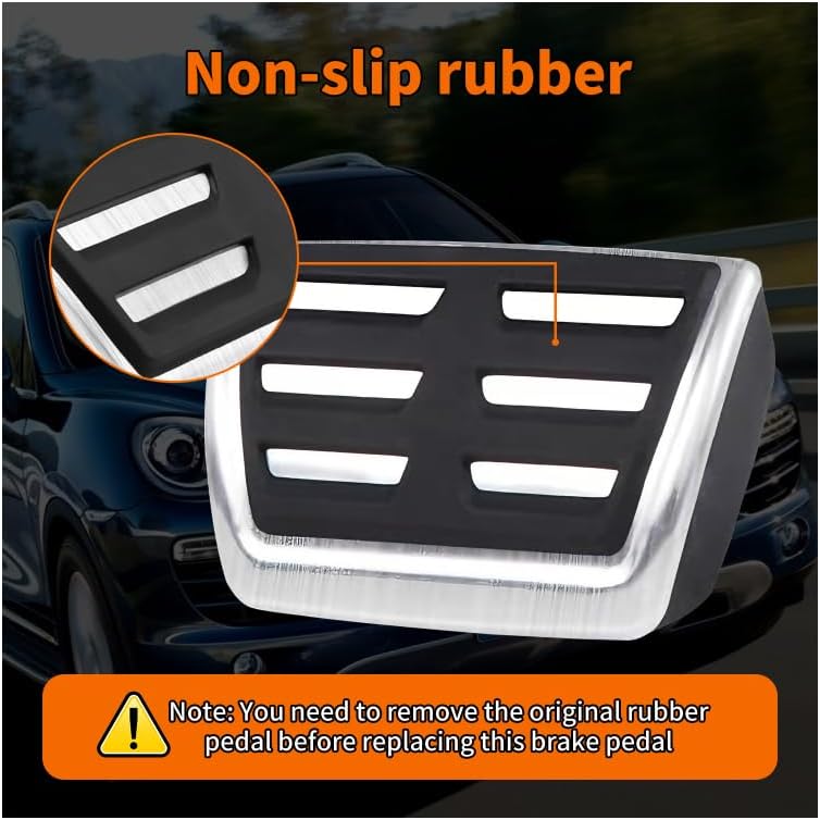 Easy to install: Need to remove the original brake rubber before installing our pedal covers. For the accelerator pedal, place our gas pad directly on the accelerator pedal of the original car, no drilling or welding.