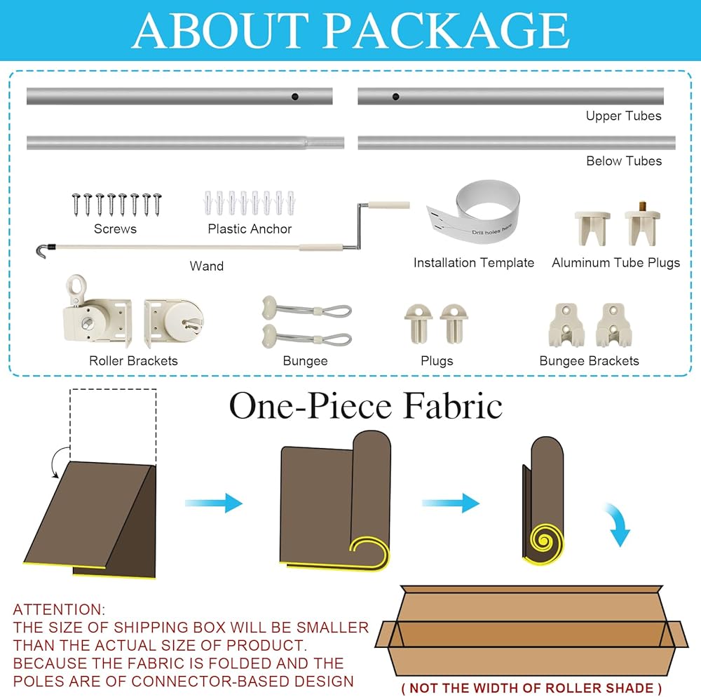 • 【Custom Widths Available】: Our custom‑size shades adopt a spliced frame design to fit various widths—0 splices for 20–59", 1 splice for 60–95", and 2 splices for 96–144"—while the fabric is always a single seamless piece with no stitched panels, allowing for easy installation, long‑lasting durability, and full sun coverage.