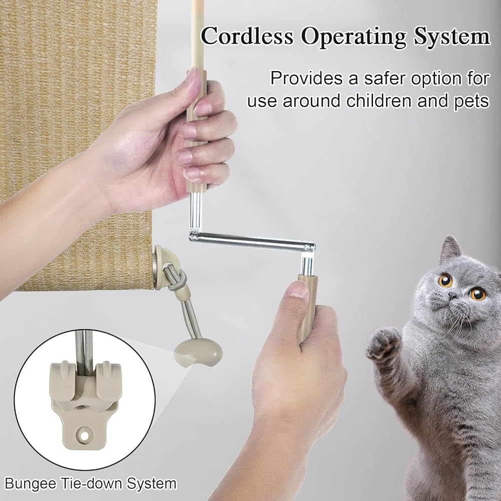 • 【Cordless Design】: The outdoor patio shades feature a safe cordless design with wand operation for easy up and down control, enhancing safety for children and pets while creating a secure space.