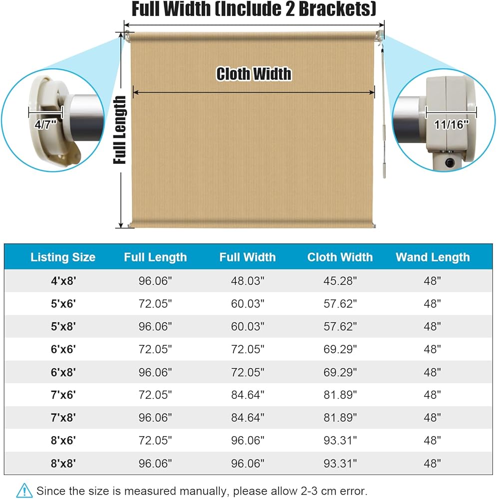 مظلة دوارة خارجية من Amagenix مقاس 15.24 سم عرضًا × 20.32 سم ارتفاعًا، ظلال فناء تعمل بالعصا اللاسلكية، تُلف الستائر الخارجية، نصنع مقاسًا مخصصًا، سمسم
