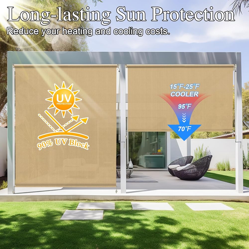 [90% UV Blocking]: Amagenix exterior roller shade uses 220 GSM 100% pure non-recycled HDPE shade fabric. Blocking 90% of harmful UV rays, these outdoor shades protect privacy and reduce sun glare
