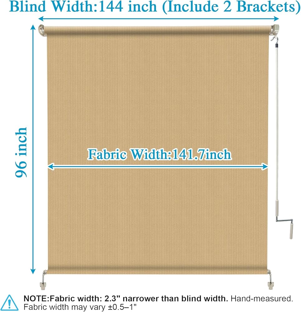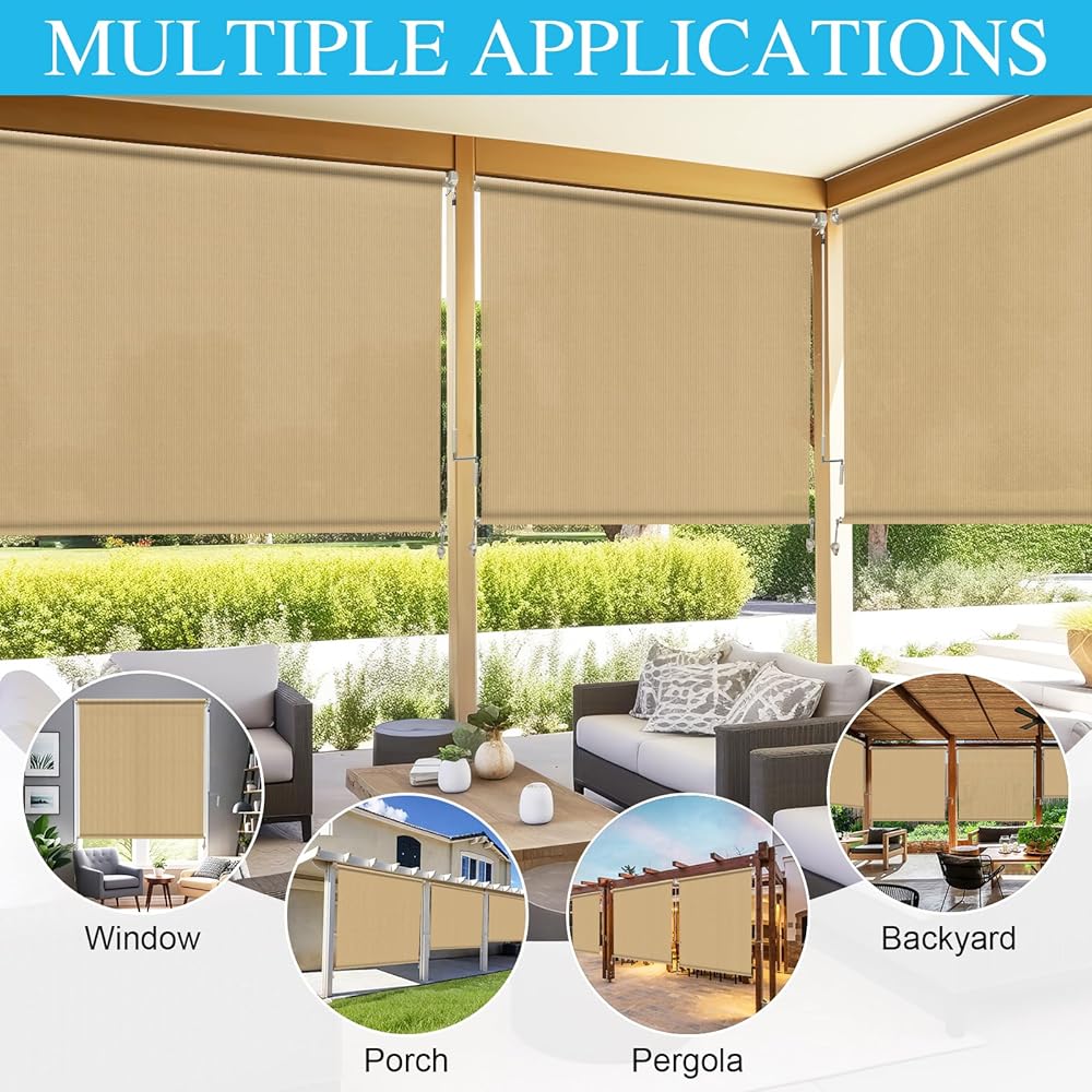 Custom-Fit Amagenix Exterior Roller Shade: Safe, Durable Sun Protection. Our spliced frames fit 20–144" widths (0 splices for 20–59", 1 for 60–95", 2 for 96–144") with seamless fabric for easy setup & long-lasting use. Safety-focused cordless wand-crank design is kid and pet-friendly. 220 GSM pure HDPE blocks 90% UV rays, reduces glare and cuts energy costs—perfect for patios, pergolas, balconies & more.