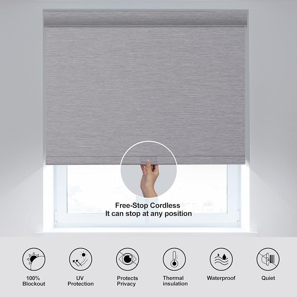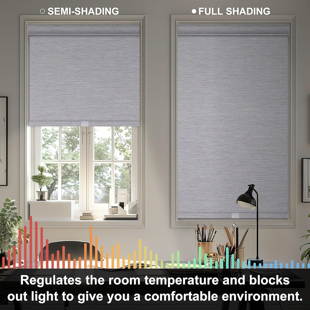 ستائر تعتيم دوارة للنوافذ، ستائر دوارة لاسلكية بدون توقف، ستائر نافذة جاكار مخططة لغرفة النوم، قماش معزول حراريًا (رمادي، عرض 35 بوصة × ارتفاع 72 بوصة)