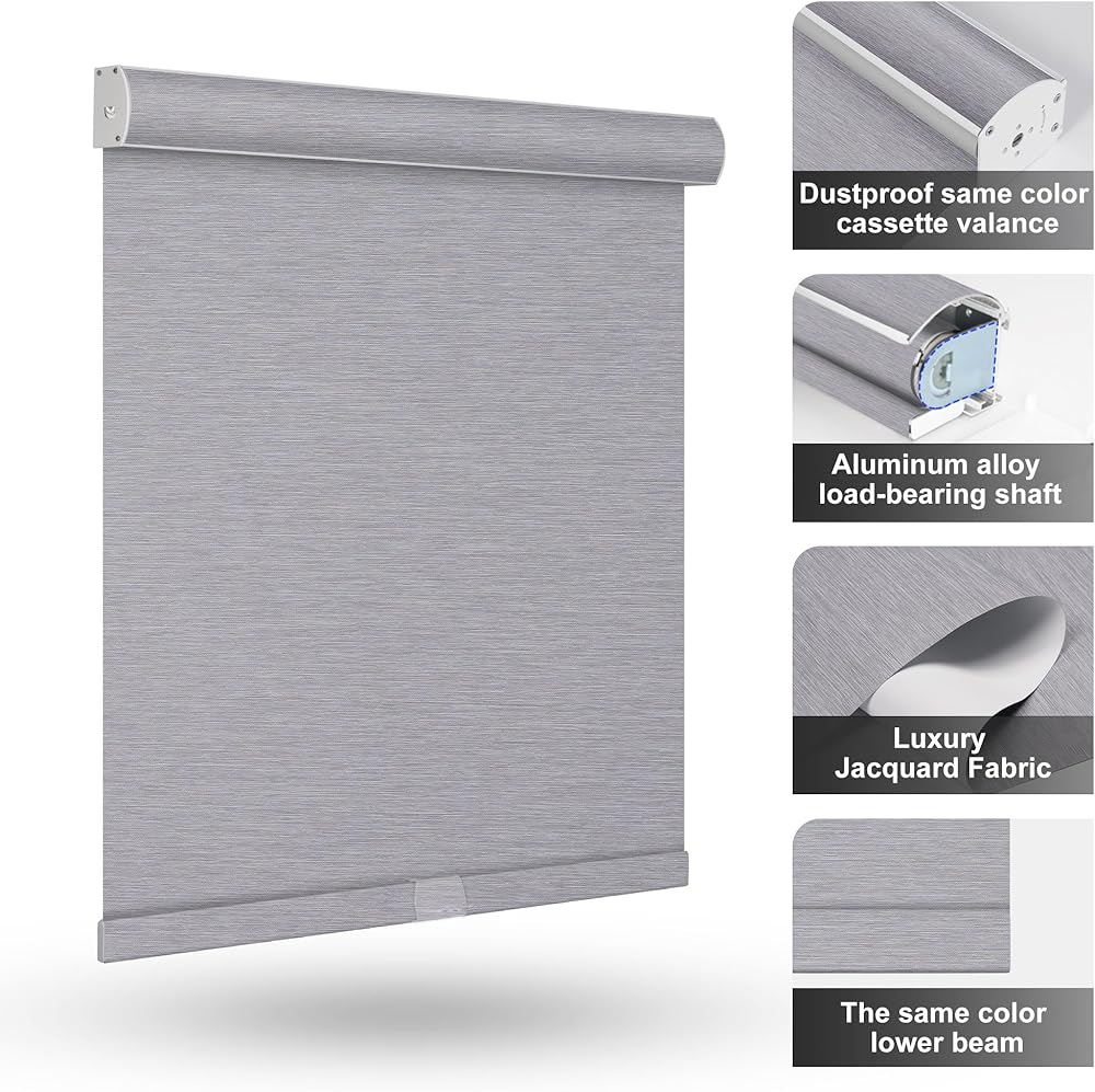 • ستائر النوافذ ذات بكرات الجاكار المخططة مصنوعة من مزيج نسيج من الألياف الطبيعية والصناعية مع نسج فريد يمنح كل مجموعة من ستائر الجاكار الدوارة تجربة حسية مختلفة. توفر الأقمشة وظائف متميزة، مع تعتيم بنسبة 100%، وحماية من الأشعة فوق البنفسجية، والعزل الحراري، وحتى تقليل الضوضاء، بينما يتم تغليف الغطاء العلوي والقضيب السفلي المصنوع من الألومنيوم بنفس القماش للحصول على أقصى درجات الجمال والملاءمة الخلابة!