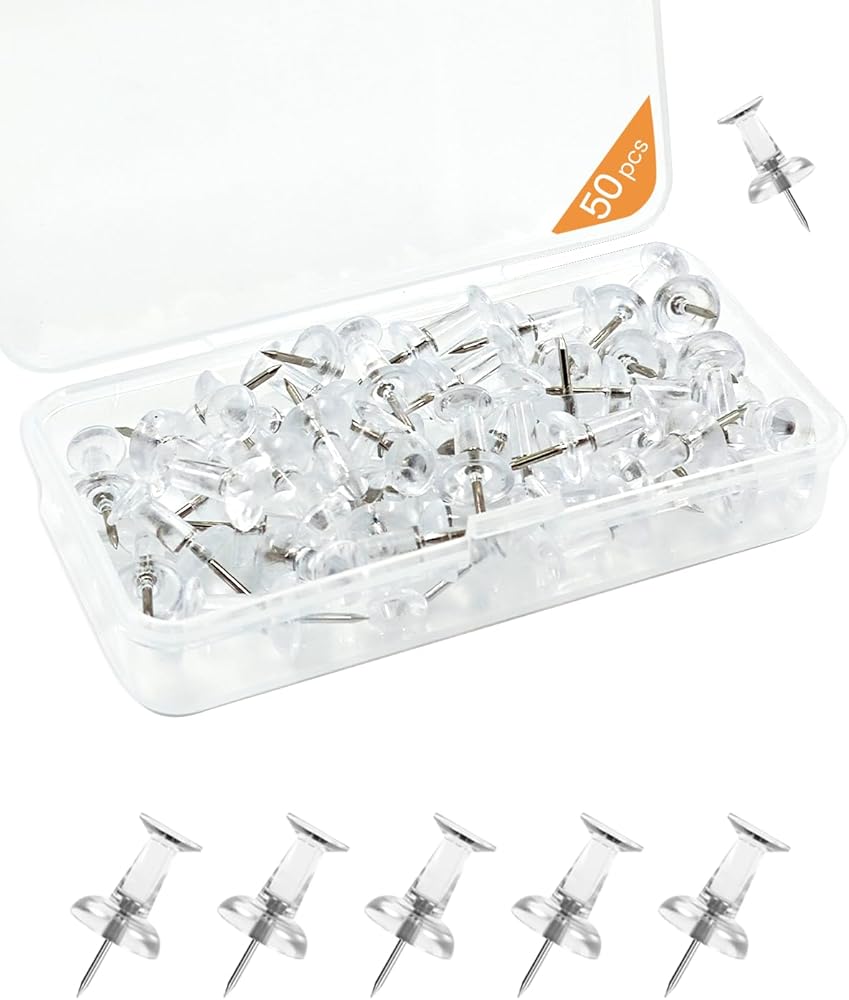 【50 دبوس دفع شفاف】 سوف تحصل على 50 دبوس دفع شفاف معبأة في صندوق بلاستيكي شفاف. التصميم العملي والكمية الكافية يمكن أن تلبي احتياجاتك اليومية لك ولعائلتك.