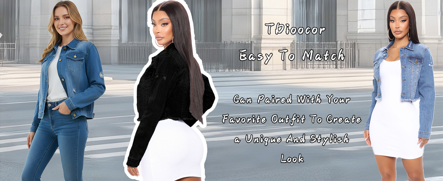 • سترة جينز للنساء عصرية، سترة جينز زرقاء، سترة جينز سوداء للنساء، سترة جينز سوداء متعرجة، سترة جينز سوداء للنساء، سترات جينز زرقاء للنساء، إغلاق بأزرار أمامية، سترات نسائية كلاسيكية كاجوال للربيع والخريف والشتاء.