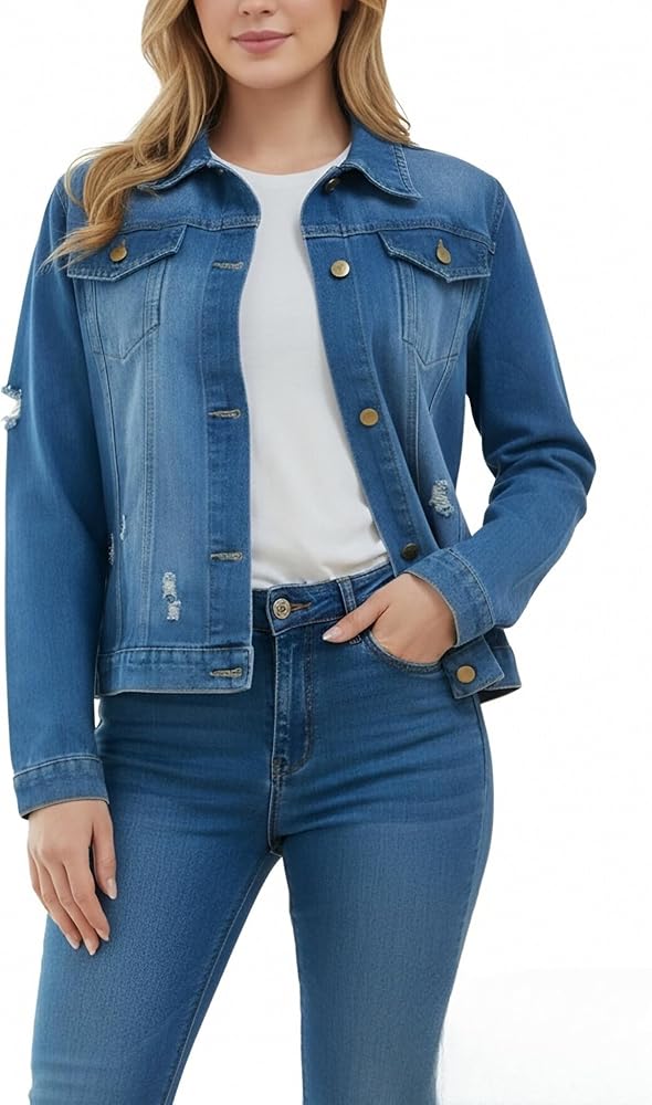 • سترة جينز بأزرار سفلية للنساء، سترة جينز أساسية كاجوال للنساء، سترة جينز بأكمام طويلة مع لمسات نهائية للأزرار، حاشية خام منسلة، سترة جينز للنساء، سترة جينز للنساء، سترة من الدنيم للنساء، معطف جينز فضفاض بدون تمدد