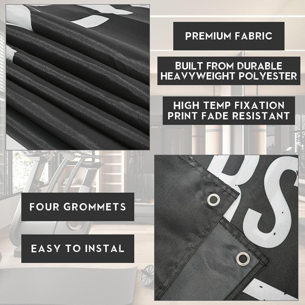 【Product Includes】This 2-pack includes two bold 5x3 ft motivational banners, perfect for large-scale display in your home gym, garage, or office space. The sizable design ensures high visibility and lasting inspiration.