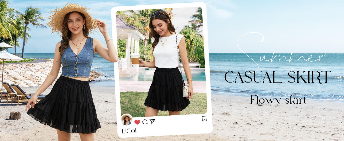 • Material:This mini skirt is made of 100% polyester fabric, which is lightweight, soft, swish and flowy as you move.