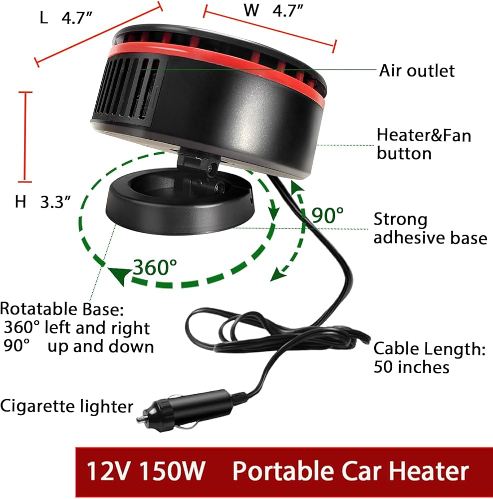 Quick and Powerful Heating: This efficient 12V car heater quickly warms your vehicle in a few minutes, clearing frost, mist, and fog on your windshield for enhanced visibility and secure driving.