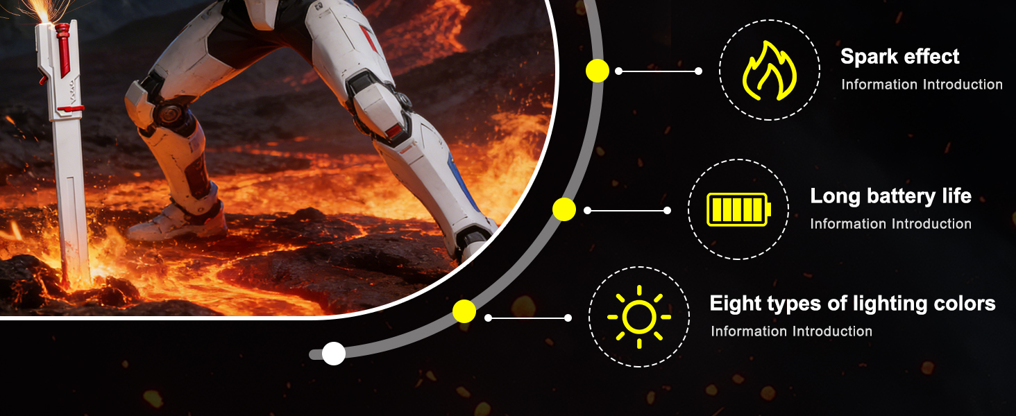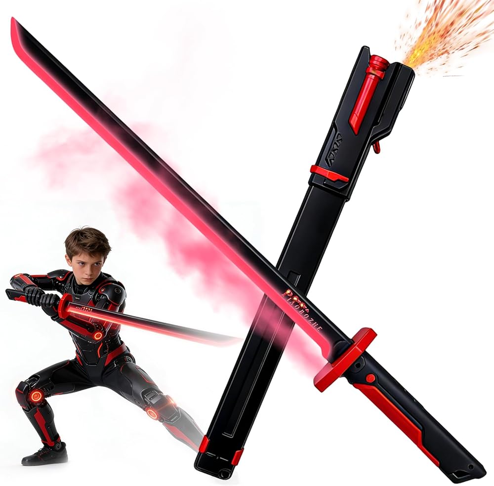 🌟أضواء RGB الديناميكية وتأثير السيف المتألق الواقعي استمتع بصور سايبربانك المذهلة مع توهج سيفنا LED المتدفق ذو 7 ألوان وانبعاثات شرارة آمنة ومذهلة - مما يخلق سيفًا متألقًا حقيقيًا يذهل في كل مبارزة أو عرض.