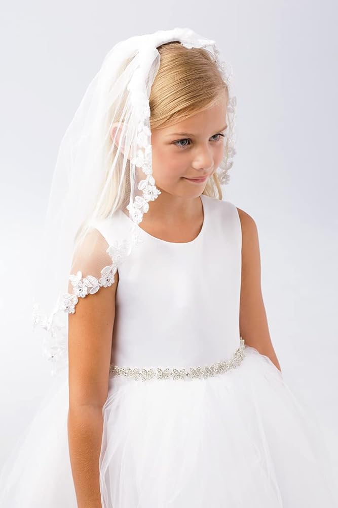 This Tip Top girls first communion veil will be a great addition to your daughter's or granddaughter's first communion. This 1st communion veil is made with satin corded flowers, faux diamonds and crystals. These girls' first communion veils fits easily over your girls head and is sturdy enough to stay there through the entire event with a comb to keep it in place. The tulle veil is 21 inches long and is double layered. These 1st communion hair accessories also has a lovely edge surrounding the tulle. You can place this veil on the top of your child's head, the middle of your child's head or at the bottom - the choice is yours! Most girls wear it where a pony tail would go. first communion veil for girls Velos de Primera Comunion, headband holy 1st white flowers vail velo para primera comunión tiara comb flower crown pearls lace catholic tiaras girl hair accessories head pieces for first communion headpiece for girls girl communion veil lace first communion veil girls first communion veils for girls catholic 1 st communion veil 1st communion veil veil for first communion girls 1st communion veils chapel veil child communion comb communion vail comunion veils first communion accessories for girls first communion crown with veil first communion veil for girls 7-16 first communion veil white flower crown veil flower girl hair accessories for wedding flower girl veil for wedding girls communion veil girls first holy communion veil girls veil first communion girls veil white holy communion veil kids wedding veil little girls veil veils for little girls velo para niña white veil for kids communion veils for girls with comb veil for communion veil for first communion girl 1st holy communion veil church veils for girls communion veil with comb first communion crown for girls first communion veil comb first communion veil with bow first communion veil with pearls girls mantilla vail for first communion veils for children