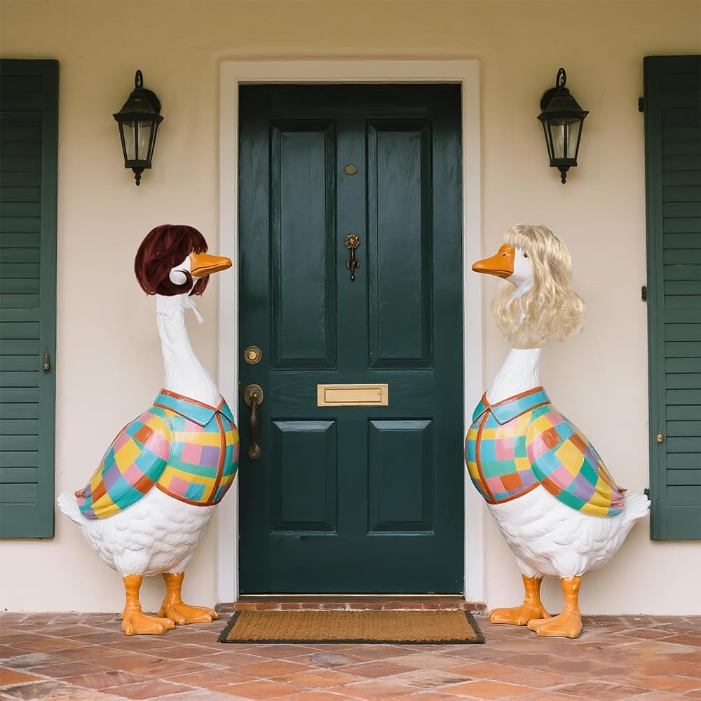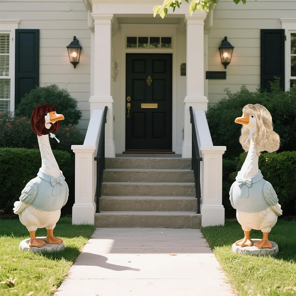 ديكور منزلي ممتع وجذاب - حوّل أوزة الشرفة الخاصة بك إلى بداية محادثة مبهجة! هذه الباروكات الغريبة تجعل الديكور الخارجي نشاطًا ممتعًا للعائلة والأصدقاء، مما يضيف الدفء والشخصية إلى الفناء أو الحديقة أو الفناء الخاص بك. طريقة بسيطة لخلق جو مريح وجذاب