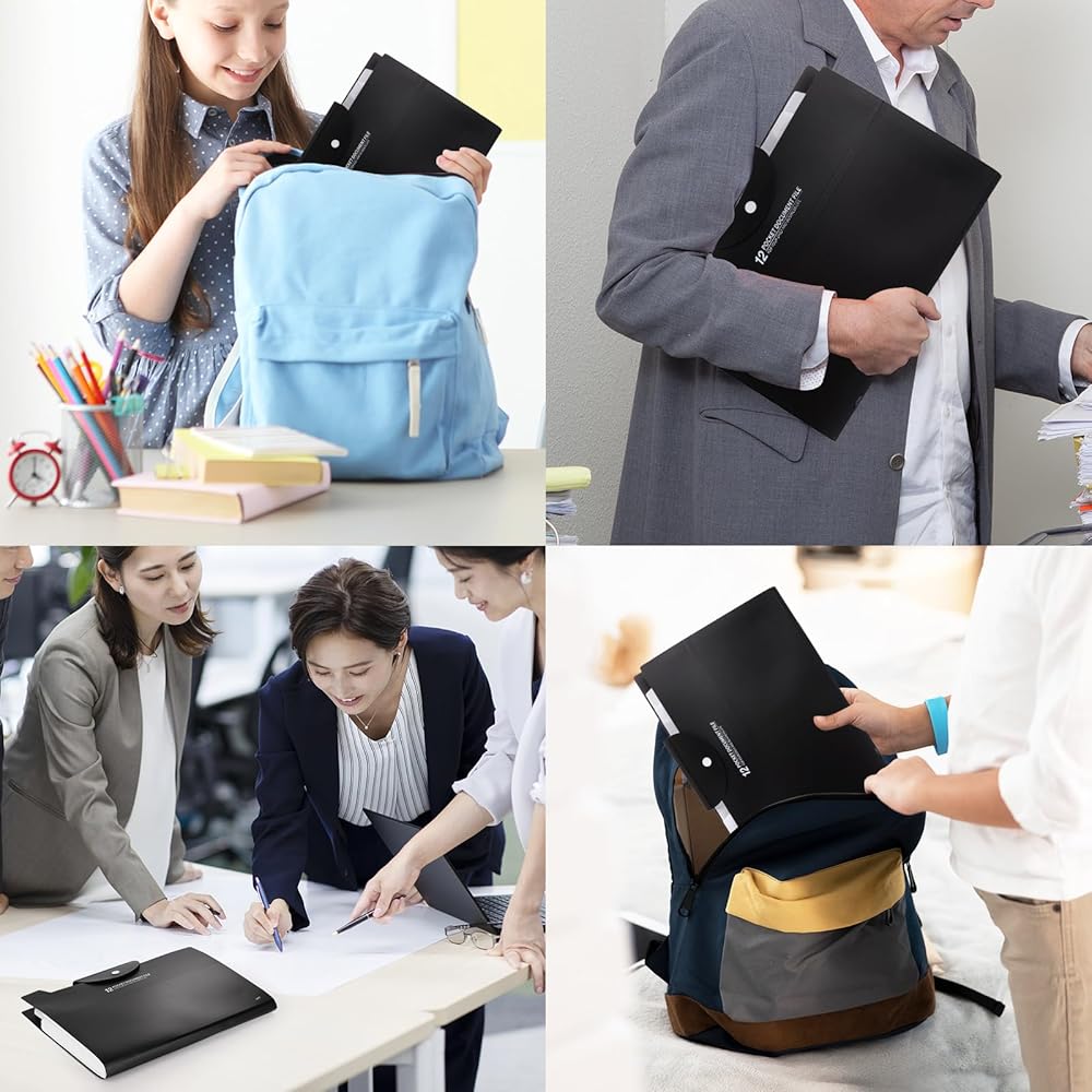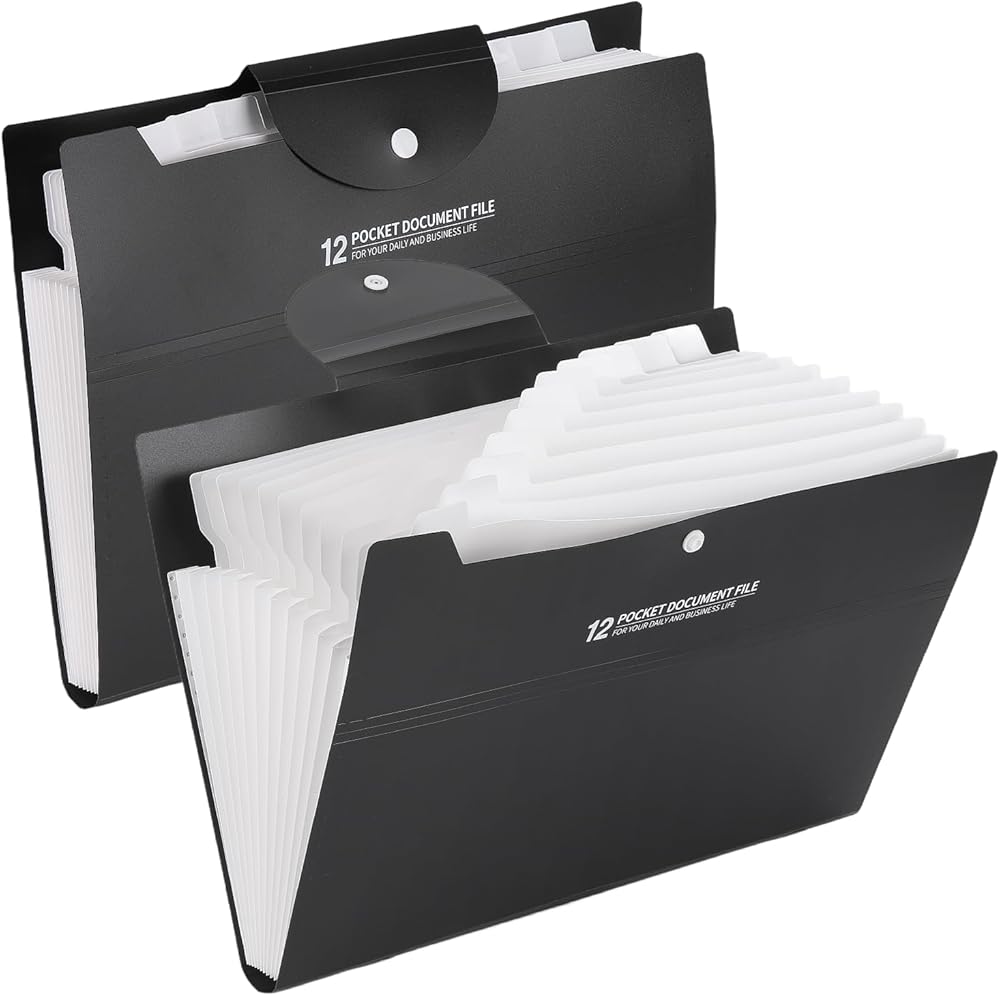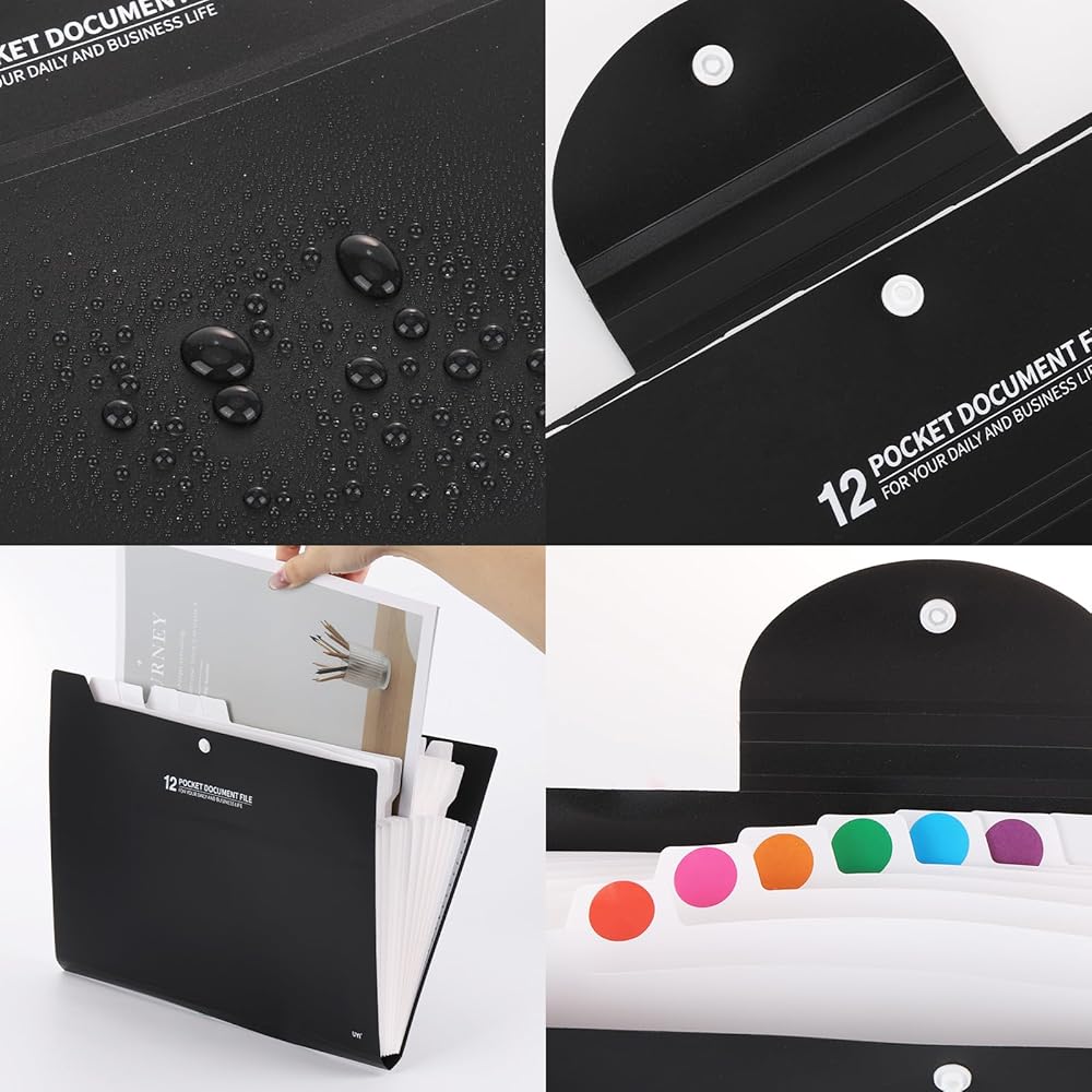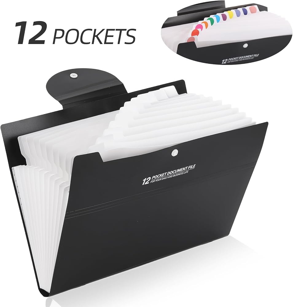 يمكن لمجلد ملفات الأكورديون ذو 12 جيبًا استيعاب كميات مختلفة من المستندات بسهولة، سواء كانت ملفات أو مهام أو تذاكر سفر، ويمكن تخزينها في فئات مختلفة