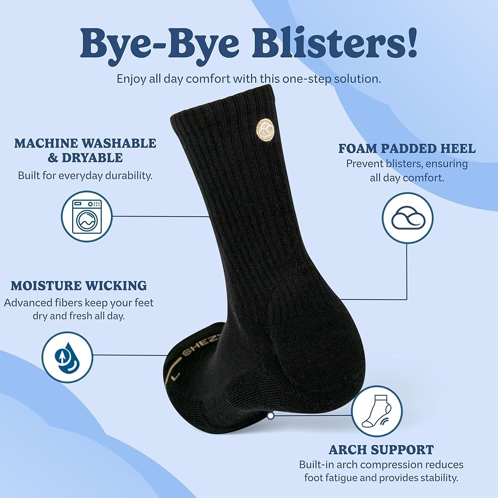 راحة متعددة الاستخدامات لكل خطوة - قل وداعًا لمضاعفة الجوارب! توفر الجوارب الدائرية المبطنة بالكعب توسيدًا إضافيًا وتحكمًا في الاحتكاك للمساعدة في ارتداء الأحذية الجديدة بسهولة. من الأحذية الرياضية والأحذية بدون كعب إلى الأحذية الرسمية والمرابط وأحذية المشي لمسافات طويلة، استمتع براحة خالية من البثور ودعم طوال اليوم في حل ذكي واحد.
