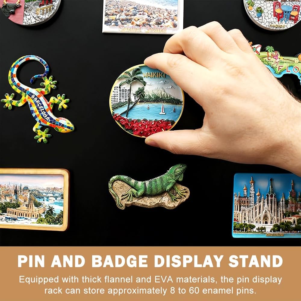 Pin rack: Equipped with thick flannel and EVA materials, the pin display rack can store approximately 8 to 60 enamel pins.