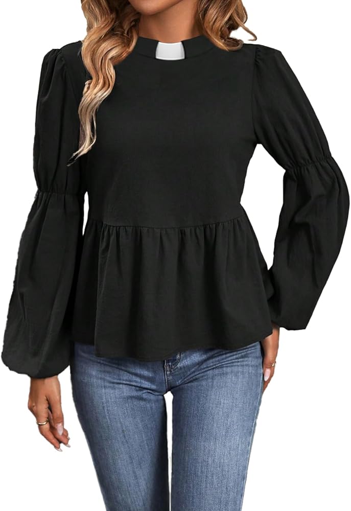 Versatile Style: The round neck and tab collar design allows this blouse to be worn casually or as clergy attire, complementing a variety of outfits.