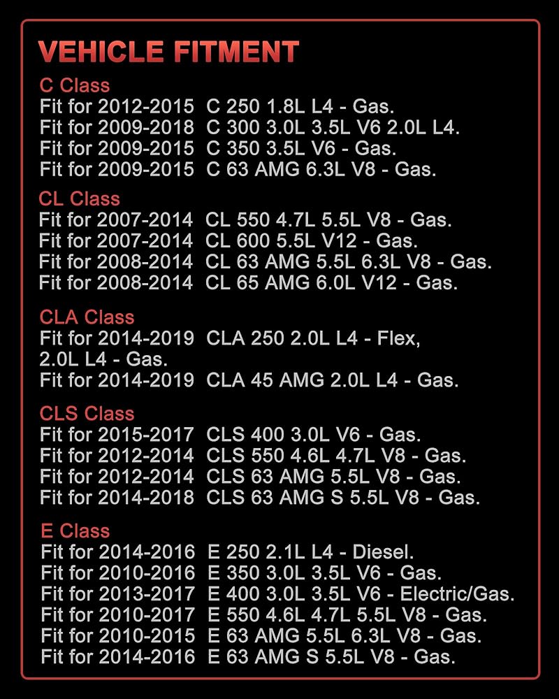 • Vehicle Fitment: Compatible with Mercedes Benz C/CL/CLA/CLS/E/G/GL/ML/R/S/SL/SLK Select Models (Please see details below)