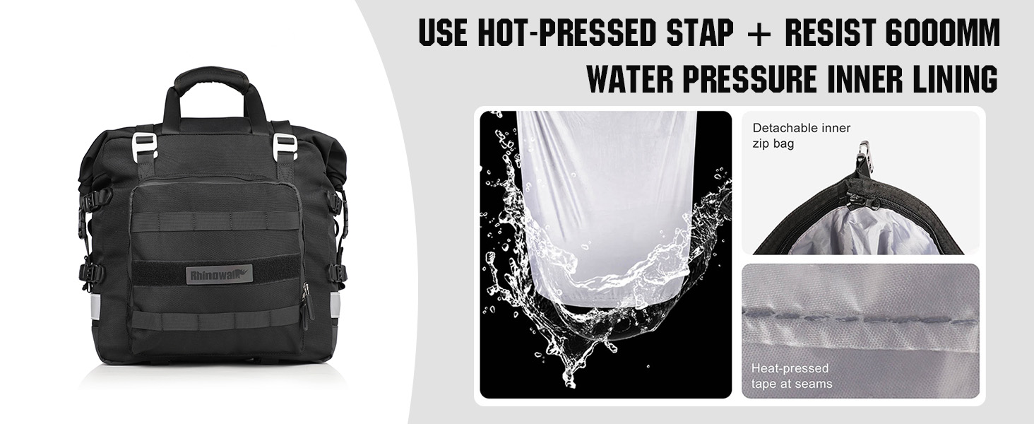 حماية لا مثيل لها ضد الماء: تتميز ببطانة داخلية مقاومة للماء مقاس 6000 مم وطبقات محكمة الغلق بالحرارة لحماية المعدات من المطر والطين والبقع. يشتمل على حقيبة مقاومة للماء قابلة للفصل للأشياء المهمة مثل الهواتف أو المستندات