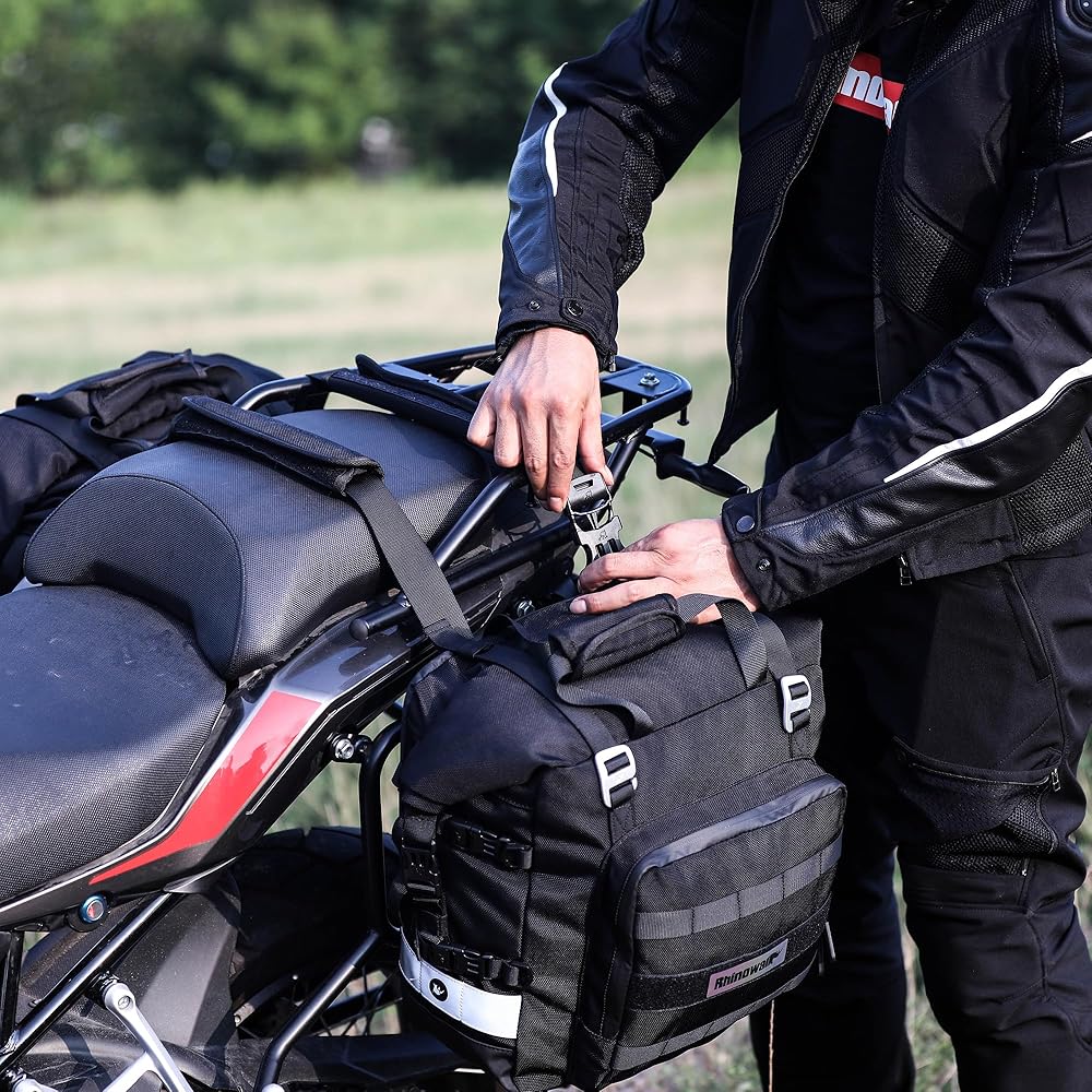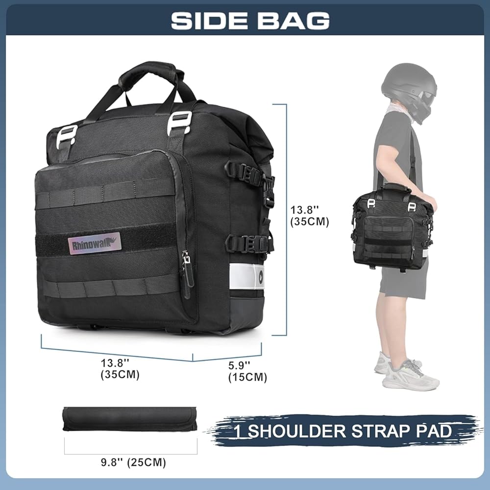حمل آمن وعاكس بكتف واحد: أبازيم القفل تحافظ على الحقيبة مثبتة بإحكام حتى على الأراضي الوعرة. تعمل طباعة L0GO العاكسة على تعزيز الرؤية الليلية، بينما يسمح حزام الكتف الواحد القابل للتعديل (متضمن) بسهولة الحمل من الحقيبة الجانبية للدراجة النارية.