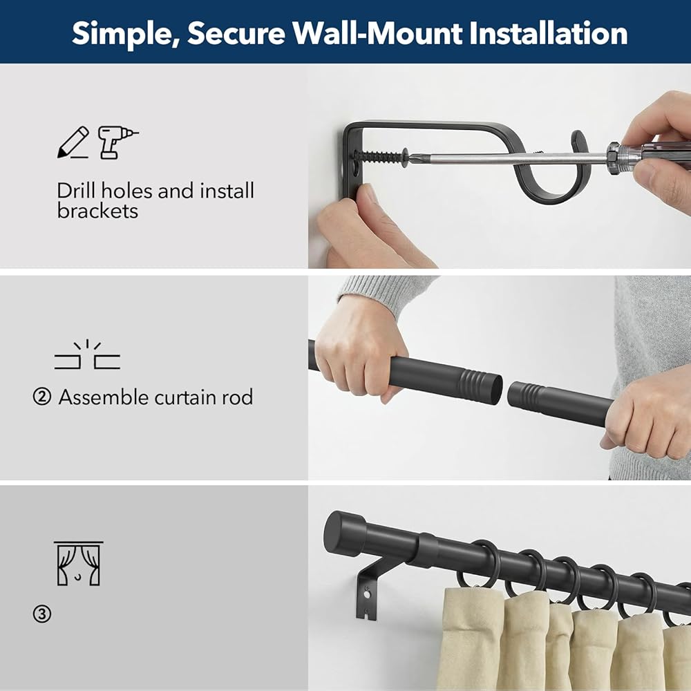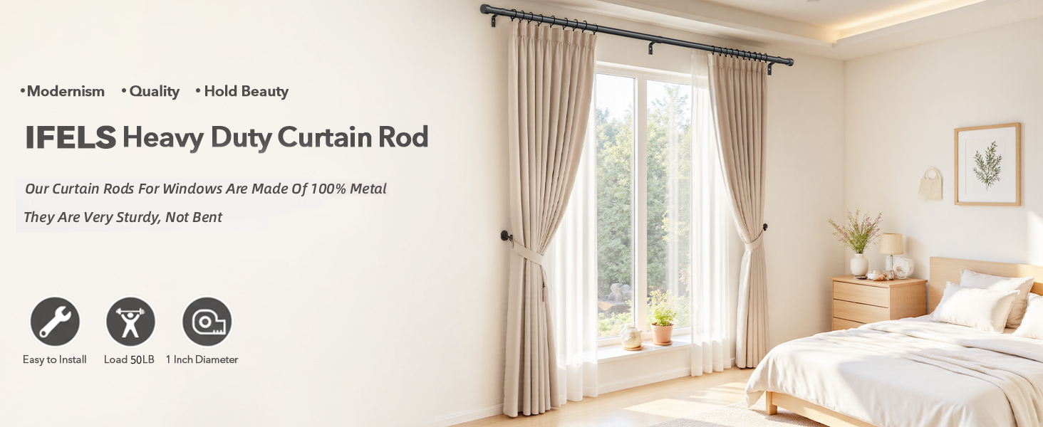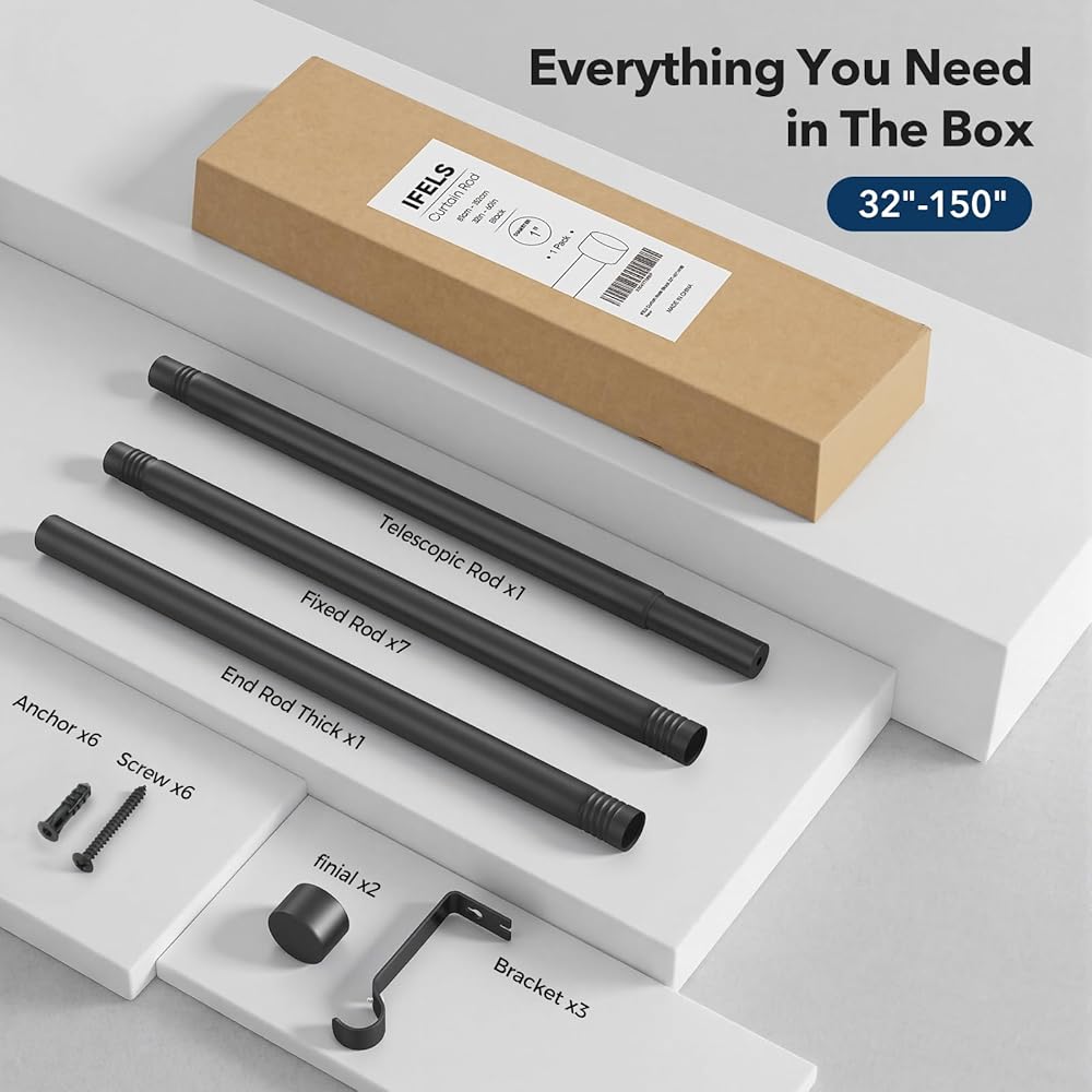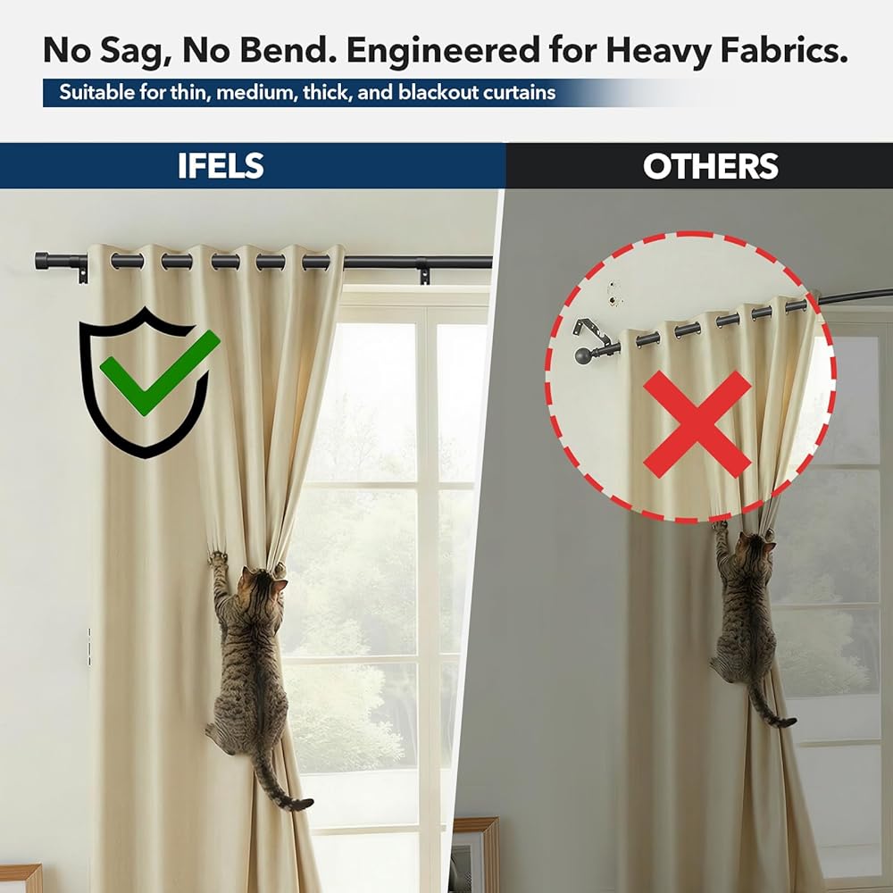 • شديدة التحمل ولن تتدلى أو تنحني: قضبان ستارة سوداء من IFELS للنوافذ مصنوعة من أنبوب معدني بقطر 1 بوصة وجدران معززة بسمك 0.8 مم ودعامة سميكة، لذلك يمكن لقضيب الستارة حمل ما يصل إلى 50 رطلاً. فهو يدعم الستائر الثقيلة بشكل موثوق دون الانحناء أو الترهل بمرور الوقت، وهو آمن ومتين للاستخدام اليومي.