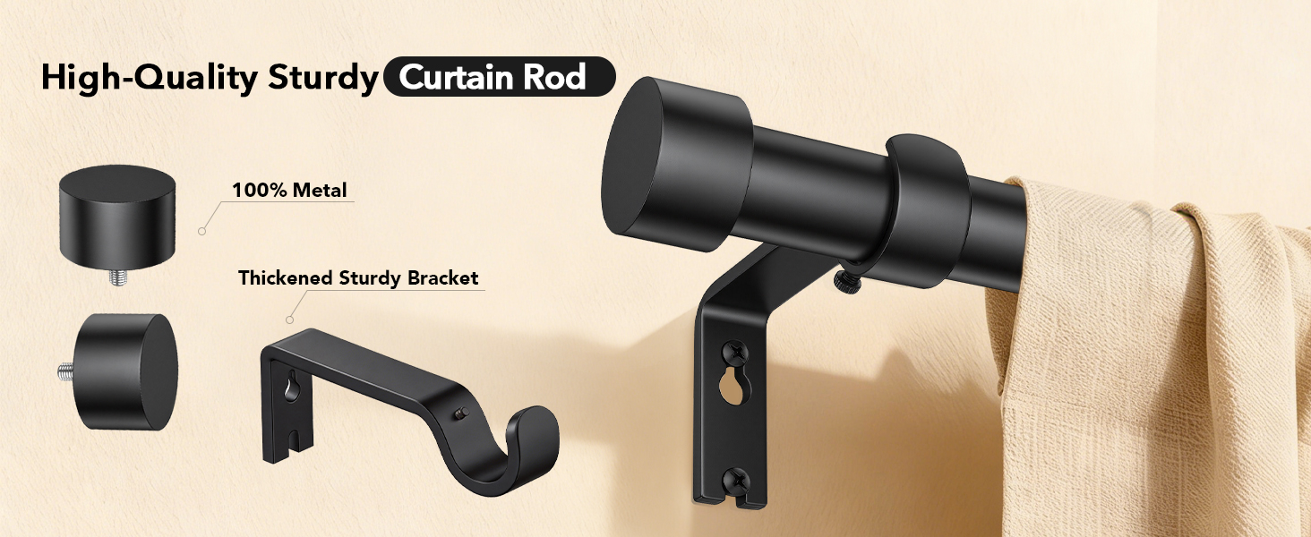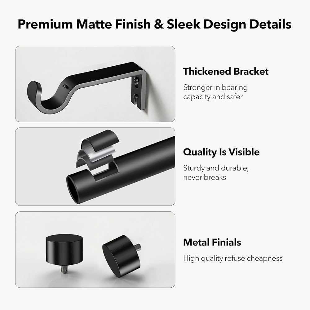 • تصميم معدني ممتاز: كل من القضيب واللمسات النهائية مصنوعة من المعدن بالكامل، مما يوفر ثباتًا معززًا ومقاومة أفضل للتآكل. يضيف اللمسة النهائية السوداء غير اللامعة لقضيب الستارة الحديث لمسة أنيقة ترفع مستوى أي غرفة - مثالية لغرف النوم وغرف المعيشة والمطابخ والمزيد.
