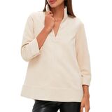 راحة طوال اليوم، تصميم مريح يسمح بحرية الحركة وسهولة الارتداء في طبقات. نسيج مسامي وصديق للبشرة بأكمام 3/4 مثالية للانتقالات الموسمية.
