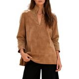 تصميم متطور برقبة على شكل حرف V يتميز بياقة واقفة أنيقة على شكل حرف V وأكمام بطول 3/4 مع تصميم مريح وانسيابي. تضيف الحاشية المنقسمة الحديثة لمسة أنيقة تناسب جميع أنواع الجسم.