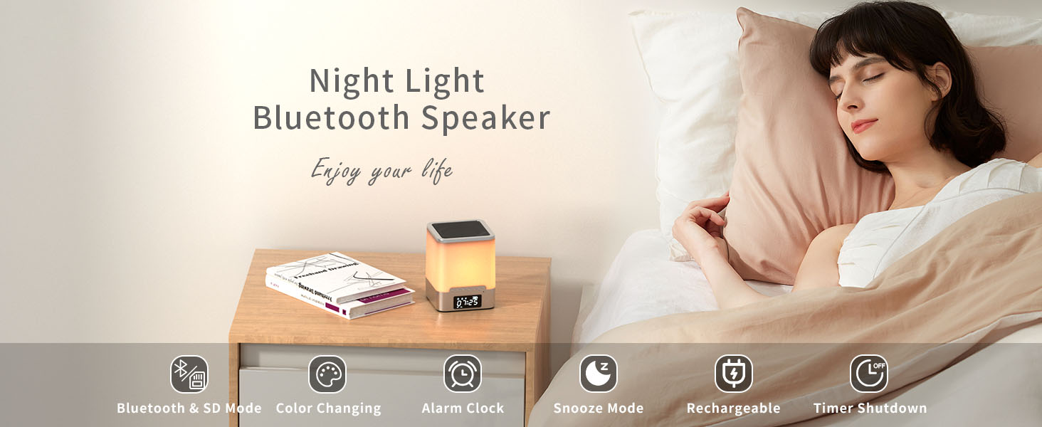 مكبر صوت بلوتوث بإضاءة ليلية: مكبر صوت بلوتوث الليلي هذا هو الإضافة المثالية لأي غرفة نوم أو غرفة معيشة. يمكن استخدامه كضوء ليلي لخلق أجواء دافئة ومريحة. باستخدام تقنية البلوتوث، يمكنك بسهولة توصيل جهازك المحمول والكمبيوتر اللوحي دون الحاجة إلى تنزيل التطبيقات.