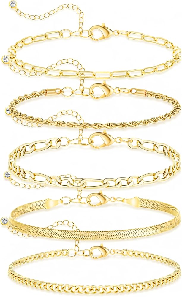 Premium Material: Our bracelet set is made with premium 14K gold-plated copper, the clasps and connectors are made of iron, which combines style with durability. Tarnish-resistant, lead-free, nickel-free, and hypoallergenic, these bracelets are designed for long-lasting wear while adding a refined elegance to your look.