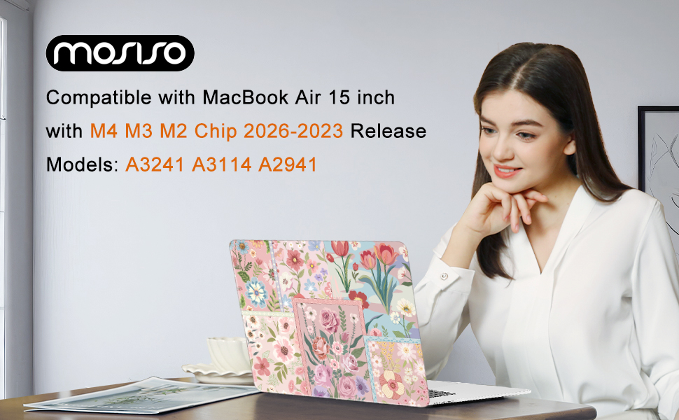 أبعاد الحافظة البلاستيكية الصلبة البلاستيكية ذات الزهور المقسمة: 13.46 × 9.45 × 0.46 بوصة، متوافقة مع حافظة MacBook Air 15 بوصة M4، متوافقة مع حافظة MacBook Air 15 بوصة M3، متوافقة مع حافظة MacBook Air 15 بوصة M2 مع شاشة عرض شبكية سائلة ومعرف اللمس بأبعاد: 13.4 × 9.35 × 0.45 بوصة (إصدار 2026 2025 2024 2023)