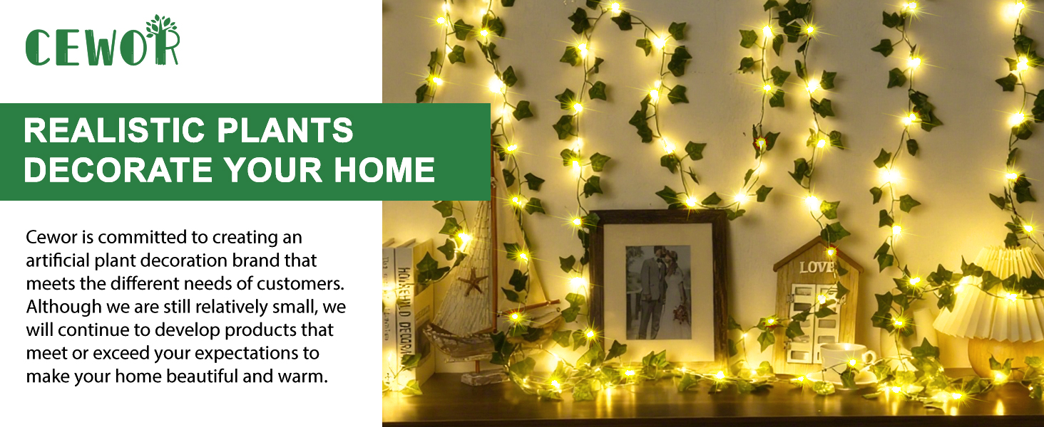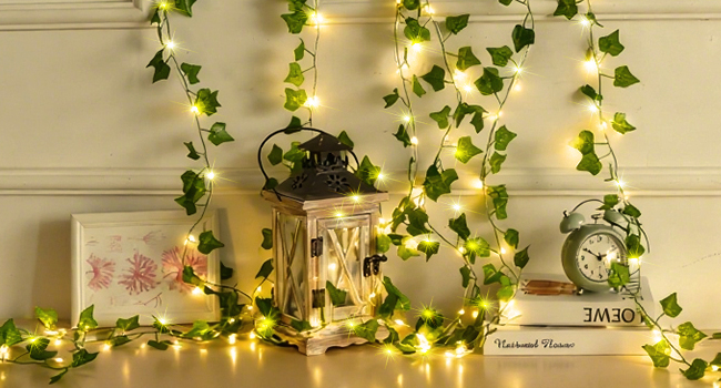 Ivy Vines مع 8 أوضاع ضبط للأضواء: كل ضوء سلسلة من الكرمة متشابك مع 100 مصباح LED. يبلغ طول كل إكليل من اللبلاب الاصطناعي 40 قدمًا / 12 مترًا. أوراق إكليل اللبلاب هذه لغرفة النوم مفعمة بالحيوية، خلال ساعات المساء، يمكن للأضواء الخيالية مع الكروم أن تخلق جوًا من الهدوء والرومانسية، مما يوفر بيئة مثالية للاسترخاء