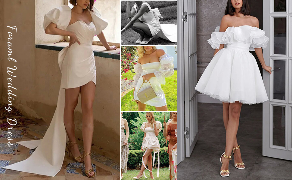 • Design: This dress with a round neck design, a-line high waisted version of the perfect modification of the body, off-shoulder style to elongate the neck line, the design is simple and generous, mini hemline you look elegant and lively and temperament, lace-up closure, wear it, so that you become the focus of attention in the crowd