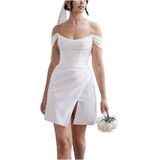فساتين زفاف قصيرة مكشوفة الكتف للعروس من الساتان مشد بسيط وبسيط لحفلات العودة للوطن in Kuwait