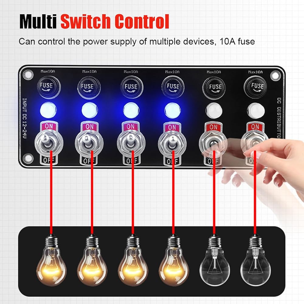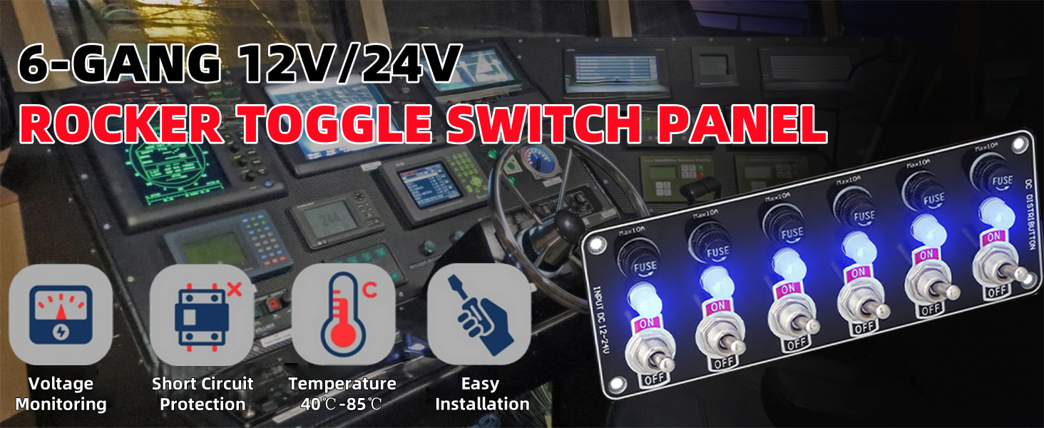 【تركيب بدرجة احترافية】لوحة التبديل سهلة التركيب. تتيح فتحات التثبيت المثقوبة مسبقًا والتوافق العالمي 12 فولت - 24 فولت التكامل السلس. يتضمن مخططات تفصيلية للأسلاك + فريق دعم فني يعمل على مدار 24 ساعة للإعداد الخالي من المتاعب في الأنظمة الكهربائية للسيارات والبحرية والمركبات الترفيهية.