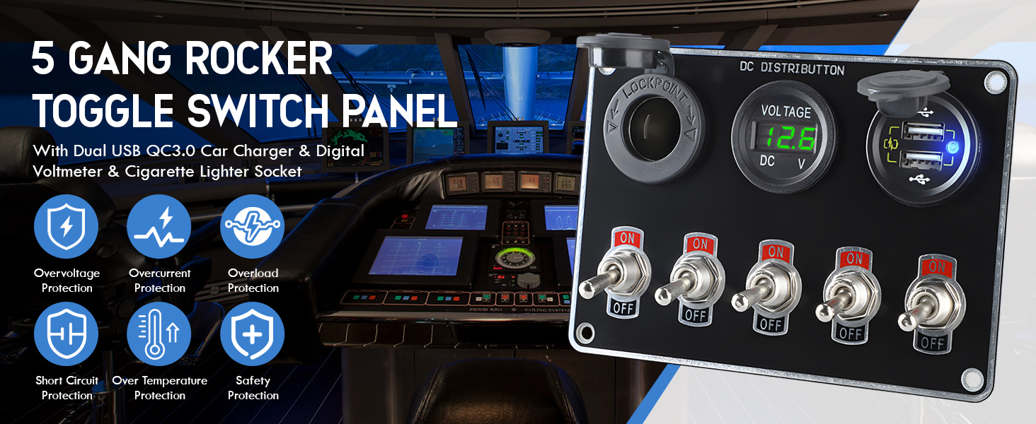 【نظام حماية متقدم】يوفر الصمام المدمج 10 أمبير أمانًا ثلاثيًا مع حماية من قصر الدائرة والحمل الزائد والاتصال العكسي. تم تصنيع مفاتيح التبديل البديلة للقارب من خلال هيكل ABS + معدني متين يتحمل الاهتزازات بينما يمنع التصميم المقاوم للماء الحاصل على تصنيف IP تلف مياه الأمطار، مما يضمن أداءً موثوقًا في البيئات القاسية.
