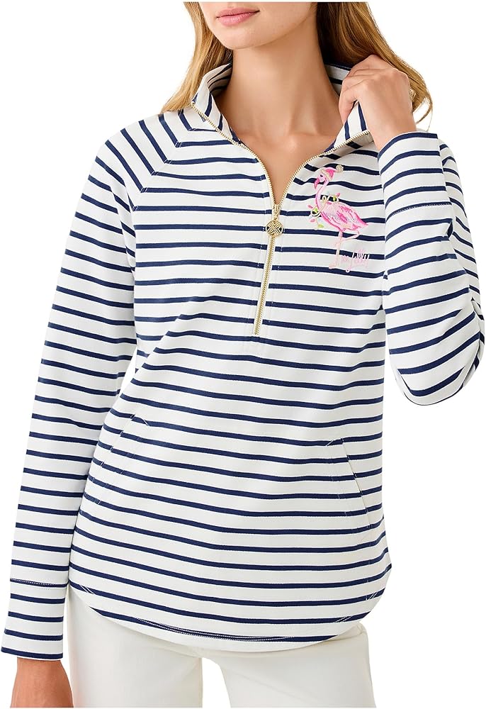 Long sleeve half zip mock popover with pouch pocket