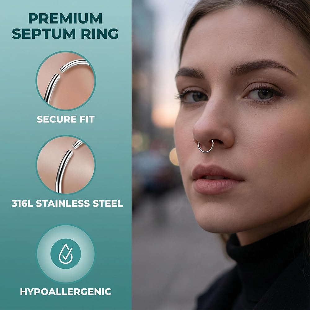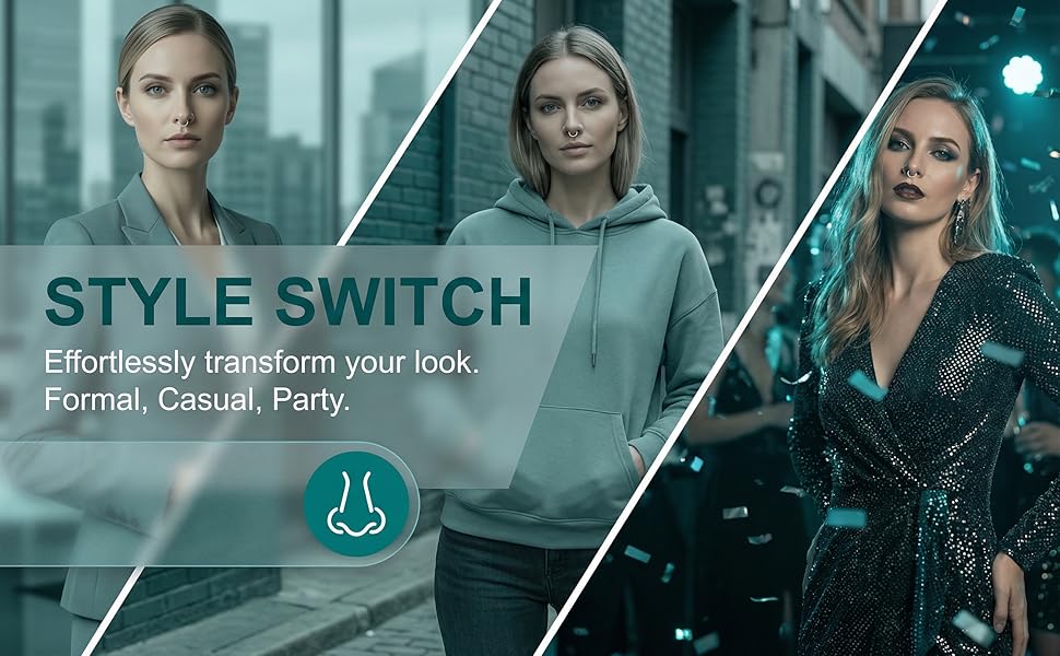 【مظهر حاجز صناعي / طوق أنف / حلقة شفاه صناعية】 - استخدميه لخلق إطلالات مختلفة غير مثقوبة (نمط الحاجز، أو نمط طوق الأنف، أو تصميم حلقة الشفاه الصناعية). رائعة للمهرجانات والحفلات التنكرية وتجارب الملابس.