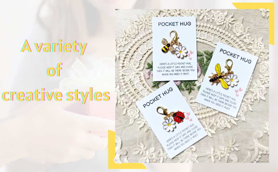 سلسلة مفاتيح عناق الجيب: يمكن أن تساعدك سلسلة مفاتيح عناق الجيب الصغيرة مع بطاقة التهنئة على الابتعاد عن الحالة المزاجية السيئة وتخفيف القلق. إذا كنت بحاجة إلى القليل من الراحة طوال اليوم، فهذا بالتأكيد يستحق ذلك. يمكنك إعطاء عناق الجيب لعائلتك وزملائك. عندما يرون رمز عناق الجيب، يمكن أن يساعدهم على شفاء كل التعاسة.