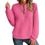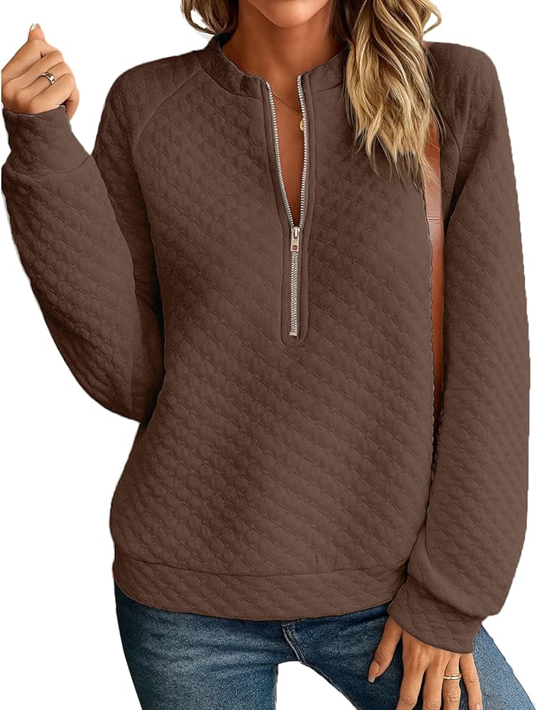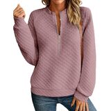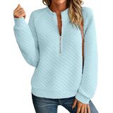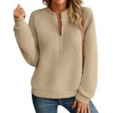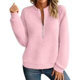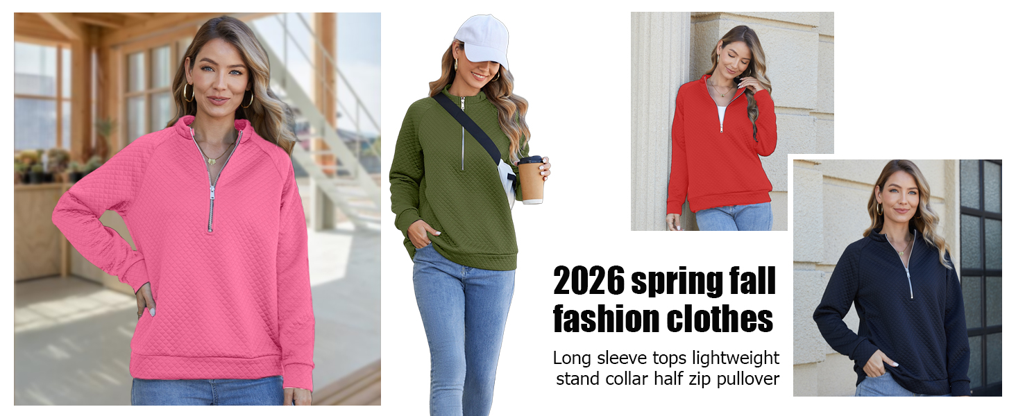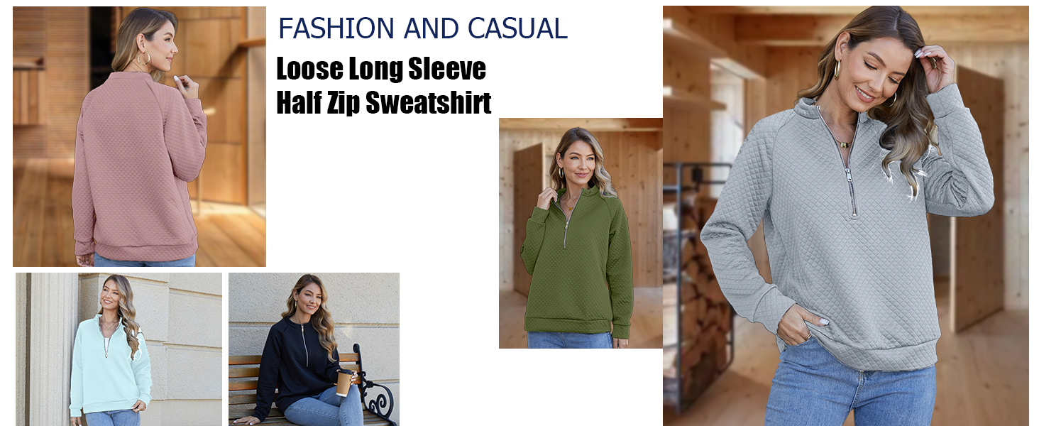 المواد: هذا السويت شيرت نصف سحاب للسيدات مصنوع من البوليستر بنسبة 100%، وهو ناعم وخفيف الوزن ومتوسط السمك ومسامي ومريح وصديق للجلد، ويحافظ على دفء وراحتك في هذا القميص الفضفاض ذو الطراز الصديق.