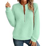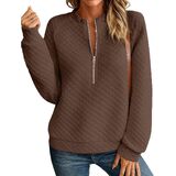 التصميم: تتميز هذه السترة النسائية بنمط مبطن ماسي، لون ثابت، نصف سحاب، ياقة واقفة، كم طويل، كتف منسدل، ملاءمة فضفاضة غير رسمية لأشكال الجسم المختلفة، يمكن ارتداؤها بسهولة لأعلى أو لأسفل، وتوفر مظهرًا عصريًا وأنيقًا.