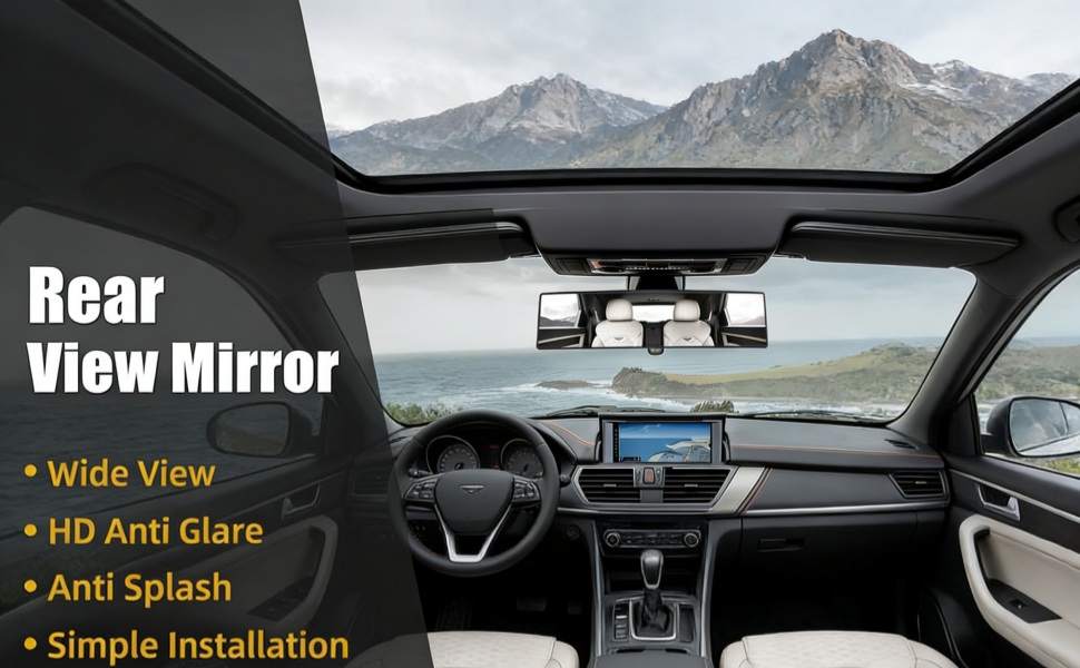 • أكثر أمانًا: مضاد للوهج، يعمل التصميم المضاد للوهج على ترشيح ضوء الشمس لضمان رؤية واضحة ليلاً ونهارًا. الضباب المقاوم للماء، ومضاد للرذاذ، يمكن أن يحميك أنت وعائلتك بشكل فعال من الأذى أثناء القيادة. يمكنك بسهولة رؤية جميع أفراد عائلتك في السيارة من خلال مرآة الرؤية الخلفية والاستمتاع برحلة رائعة وآمنة