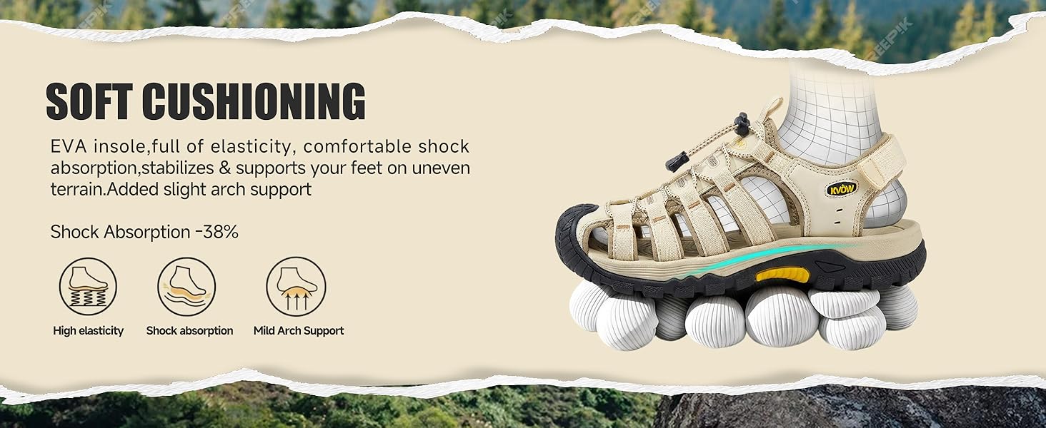 دعم وراحة طوال اليوم: تم تصميم هذه الصنادل المريحة ذات المقدمة المغلقة للسيدات لتوفير راحة دائمة، وتتميز بشريط مطاطي آمن لسهولة الارتداء ووسادة قدم مرنة ترتد مع كل خطوة. يوفر النعل الداخلي المصنوع من أسيتات فينيل الإيثيلين (EVA) المدمج وغير القابل للإزالة دعمًا طفيفًا للقوس، مما يجعل صنادل المشي النسائية ذات المقدمة المغلقة مثالية لصنادل المشي المغلقة عند أصابع القدم ويمكن للنساء ارتداؤها طوال اليوم دون تعب.