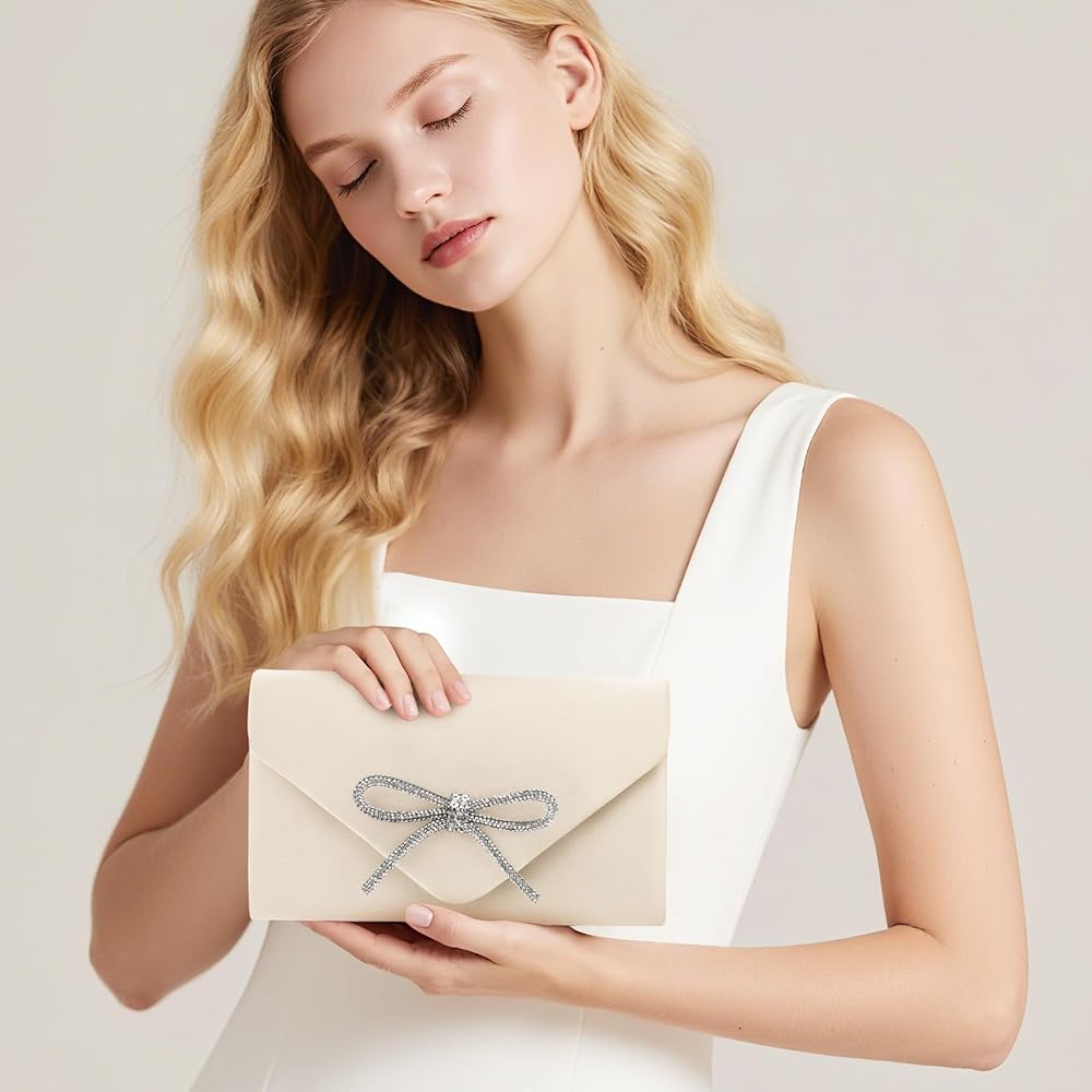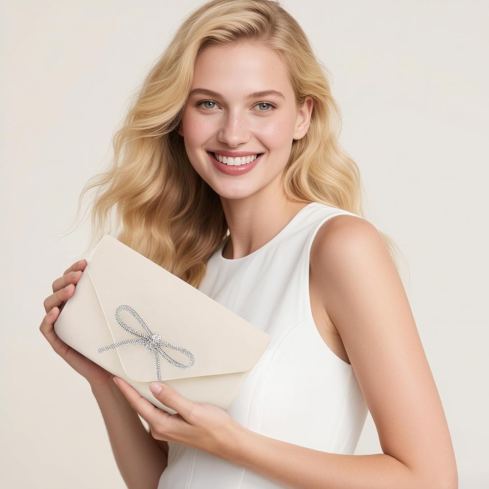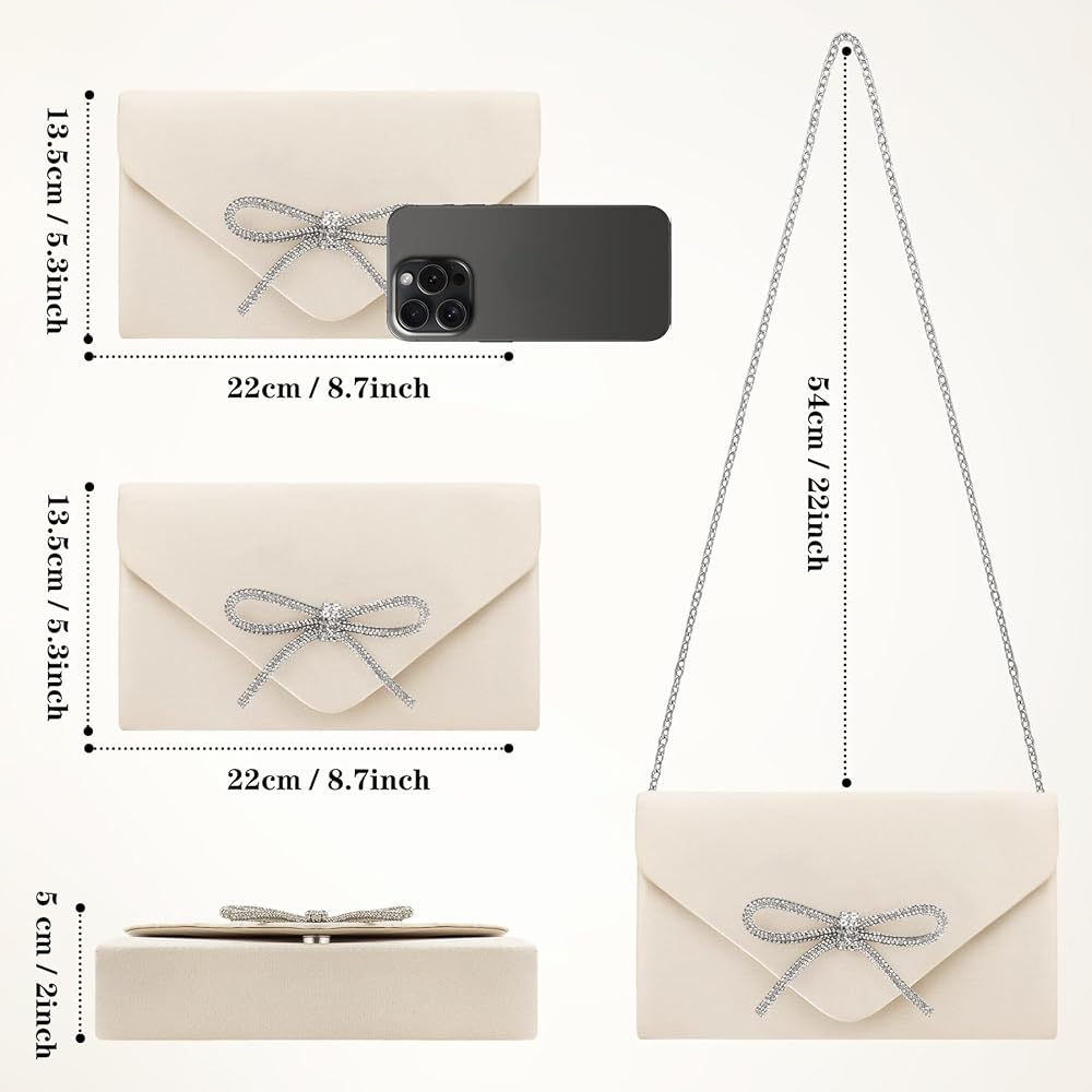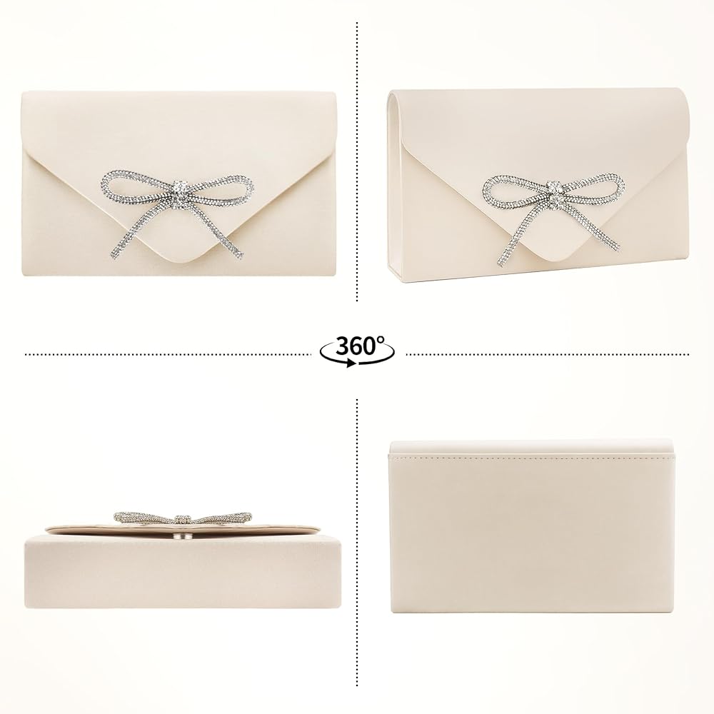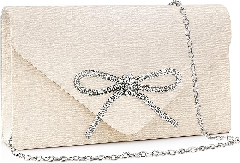 • SPARKLING AND FASHIONABLE: This women's clutch bag features a classic and stylish look with a front flap and magnetic button closure. Silky and shiny satin detailing and a cute bow add a touch of glamour to your evening attire.