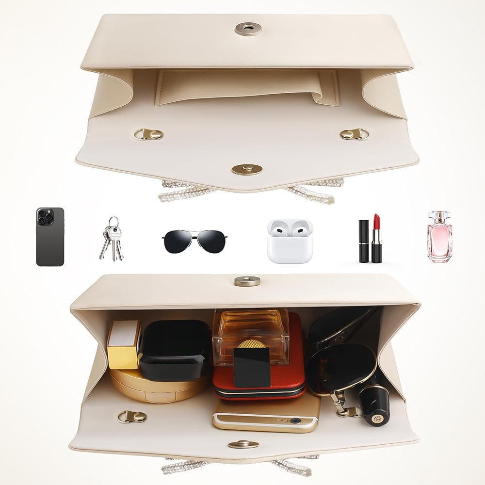 • MULTIPLE STYLES: It comes with a detachable chain that allows you to wear it as a classic clutch, an elegant handbag, or a chic shoulder bag, providing different styles and options for your outfit.