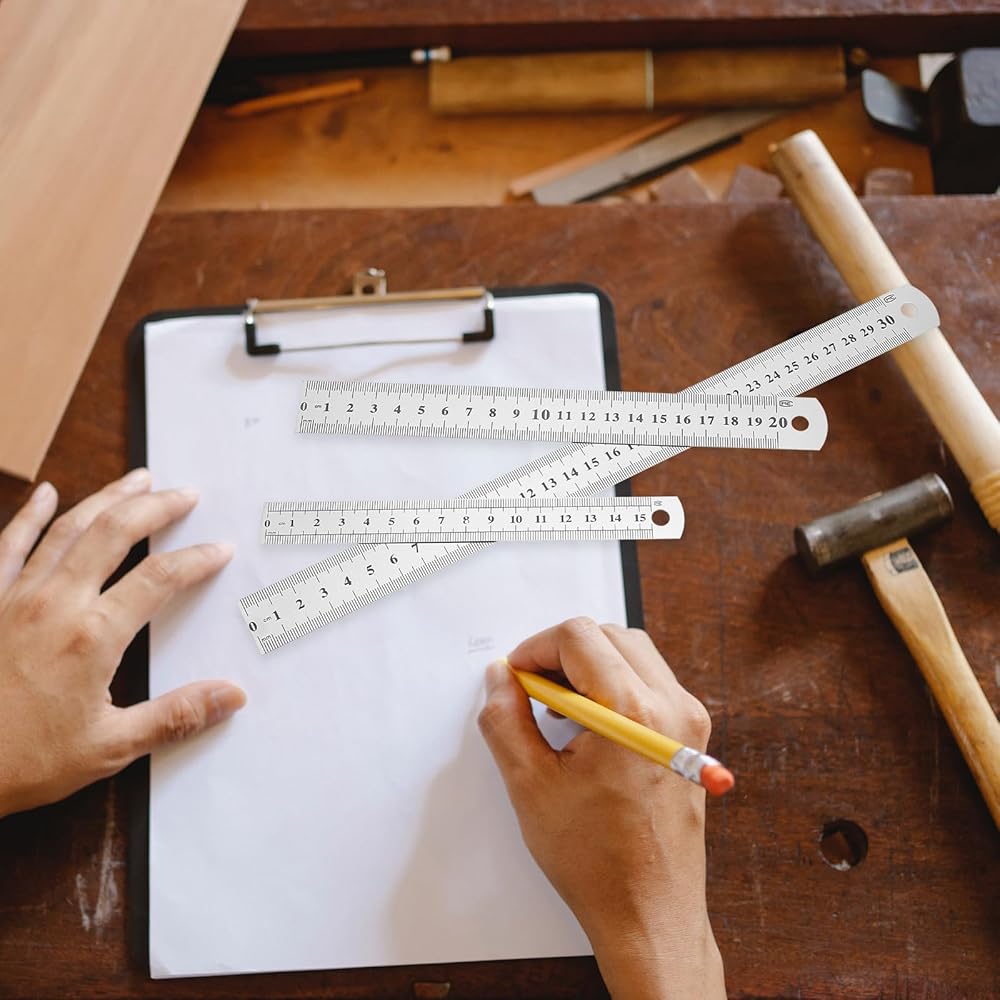 - الفولاذ المقاوم للصدأ - مقياس قياس مزدوج الجوانب. هذا أيضًا صديق جيد، وسيحبون هذه المسطرة الإبداعية