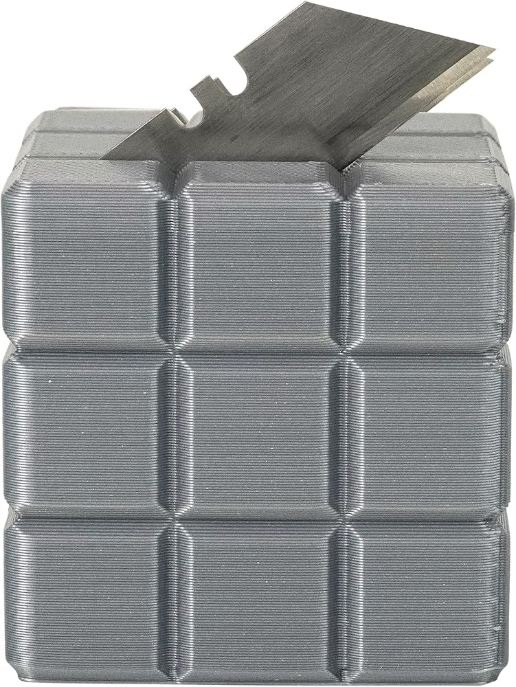 حالة التخلص من ماكينة الحلاقة المطبوعة ثلاثية الأبعاد. تم تصميم هذه العلبة للسماح بإدخال شفرة الحلاقة بسهولة بينما يجعل من المستحيل تقريبًا إخراج ماكينة الحلاقة من العلبة لأسباب تتعلق بالسلامة. سيتم التخلص من عدة شفرات حلاقة. الحالة ليست قابلة للفتح وغير قابلة لإعادة الاستخدام.