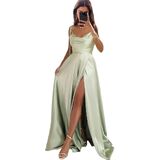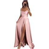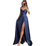 • فساتين سهرة نسائية من الساتان للحفلات الراقصة، فستان رسمي بأشرطة سباغيتي وفستان وصيفة العروس من الساتان بفتحة جانبية، الفساتين تتسع من الخصر، وحاشية كبيرة الحجم، مما يضيف لمسة رومانسية إلى الفستان. فستان الحفلة النسائي هذا مصنوع من الساتان، لذلك يبدو أكثر أناقة. يأتي فستان السهرة هذا مع أربطة بدون ظهر.