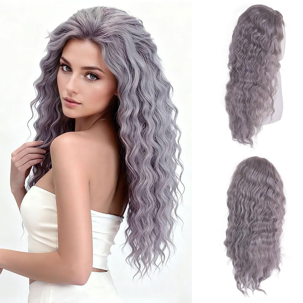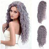 GNIMEGIL 26 بوصة شعر مستعار طويل مموج رمادي للنساء جزء مجاني من شعري رقيق تصفيفة الشعر الفيكتوري شبح زي حفلة الهالوين شعر مستعار قوطي رعب ساحرة كوسبلاي